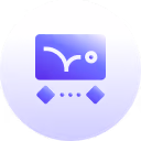 An icon featuring a bold purple lightning bolt centered between two circular shapes, set against a light background, symbolizing energy or speed.